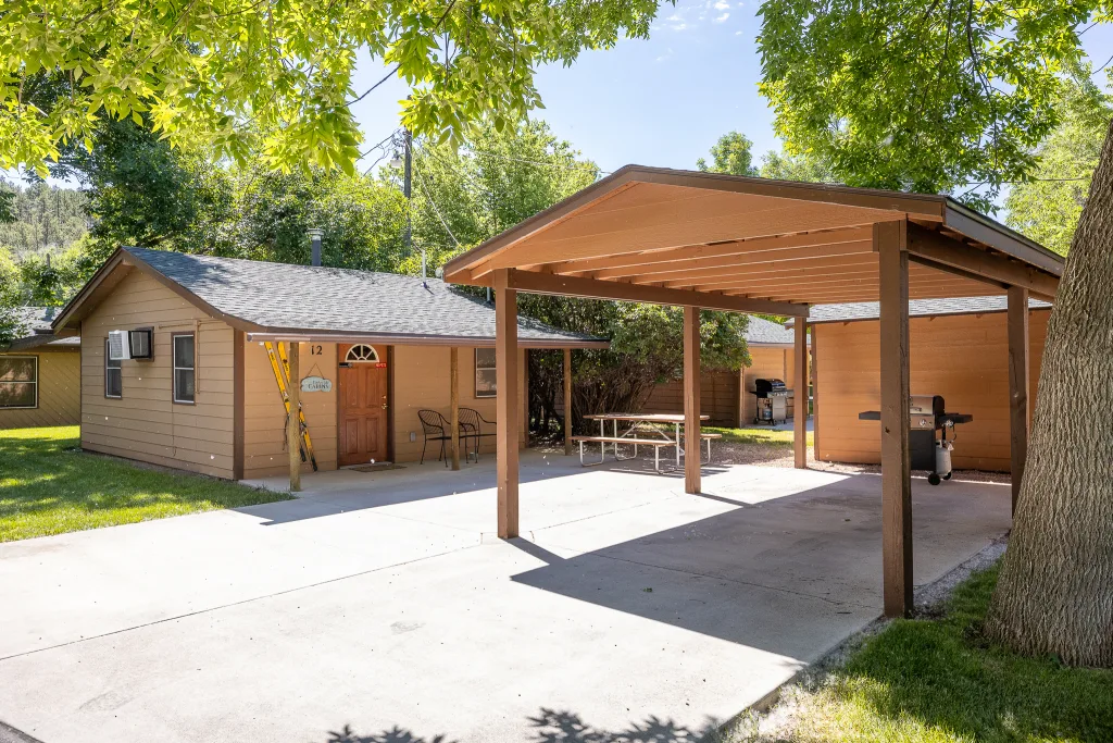 Our cozy and comfortable cabins has 1-bedroom, 1-bathroom. Relax on your deck after a long day of touring the beautiful Black Hills!