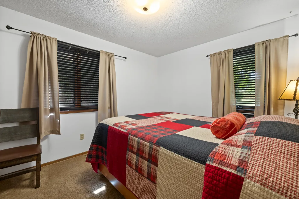 With a superb view of the lake and ample room for family and friends, the Lake View Lodge is a 3-bedroom/2-bathroom lodging with 3 Queen beds and a twin bed. The Lake View Lodge has extra room for fun with a 1-bedroom, 1/2 bathroom bunk house, as well.